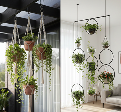• Pot Gantung: Rangkai pot-pot kecil secara vertikal menggunakan kawat atau tali.
